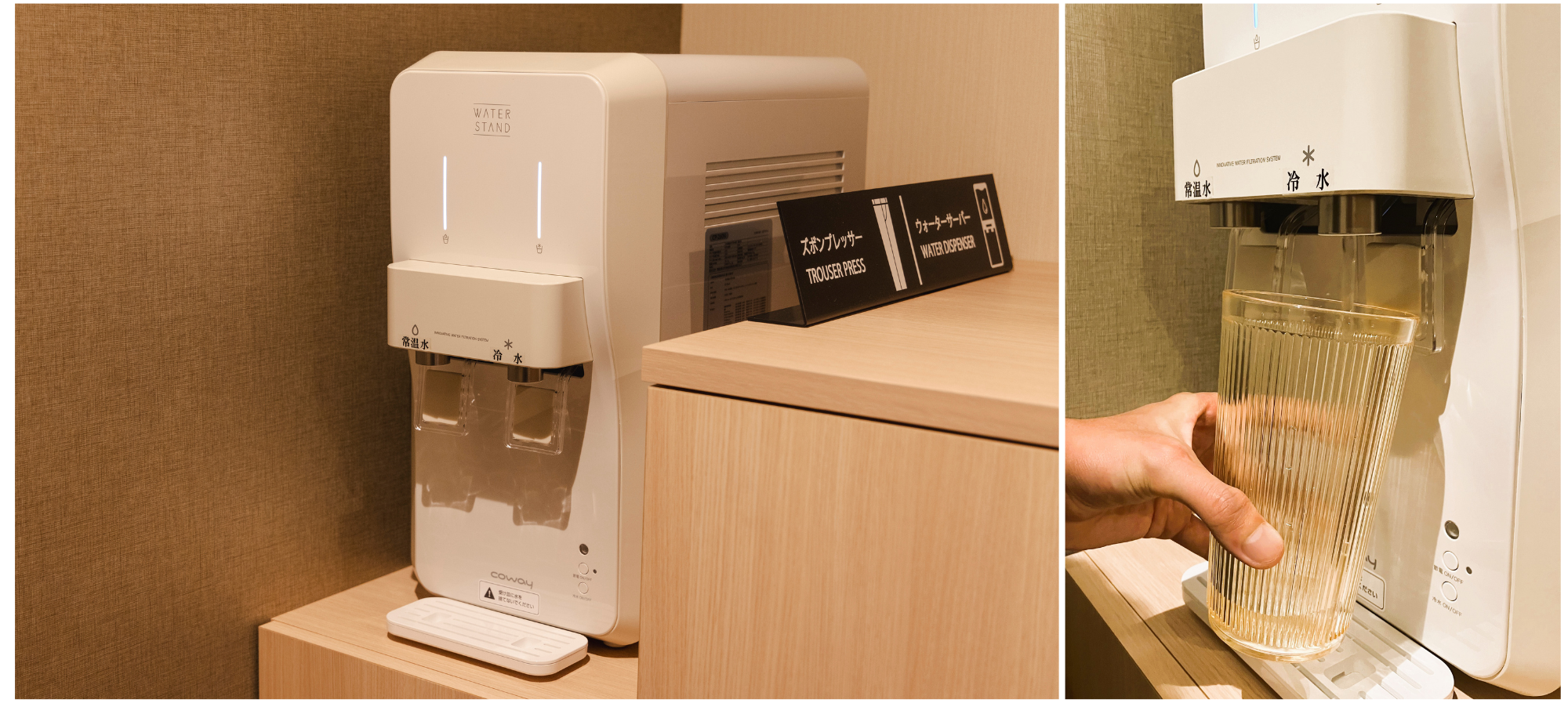 加えて、各階のエレベーターホールには新たにウォーターサーバーを設置。冷水と常温水の2種類をご利用いただけます。客室にご用意している専用のタンブラーやマイボトルに補充して、いつでもお好きな時にお部屋でおくつろぎの1杯をご利用いただけます。