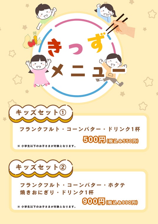 そんな想いから、「牡蠣小屋 かき太鼓」ではお子さまにも嬉しいキッズメニューをご用意しました。