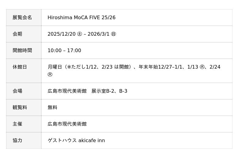 オープン・プログラム「Hiroshima MoCA FIVE 25/26」 2025/12/20㊏-2026/3/1(日)