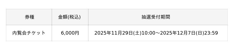 チケット情報(東京会場)