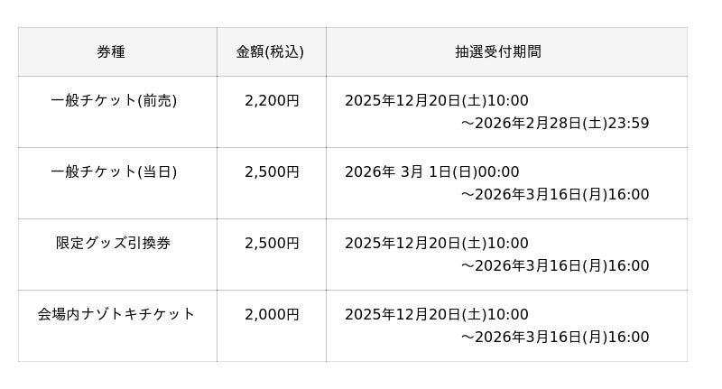 明日 12/20(土)10 時より一般チケット販売開始!限定グッズ・会場内ナゾトキの情報も解禁