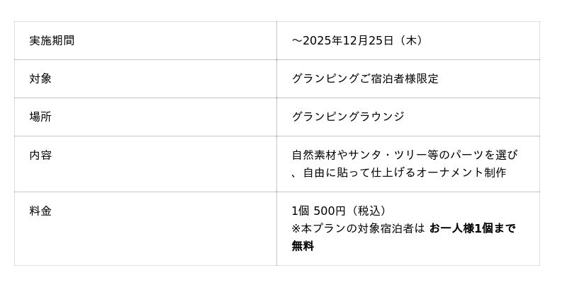 《体験コンテンツ》手づくりクリスマスオーナメント制作(グランピング宿泊者限定)