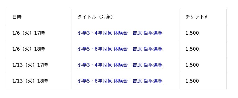 【リリース概要|吉原 哲平選手のジュニア・セッション 小学生対象体験会