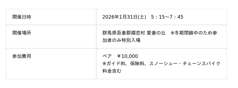 「愛妻の丘で夫婦そろって日の出ツアー」- 一般社団法人嬬恋村観光協会 主催、2026年1月31日(土)明け方に開催