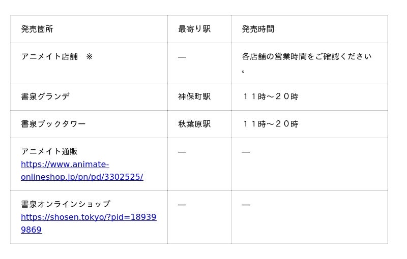 ※東京都、埼玉県、千葉県、神奈川県、群馬県、栃木県のアニメイト店舗で発売。発売店舗の詳細は、アニメイト通販のURLをご参照ください。