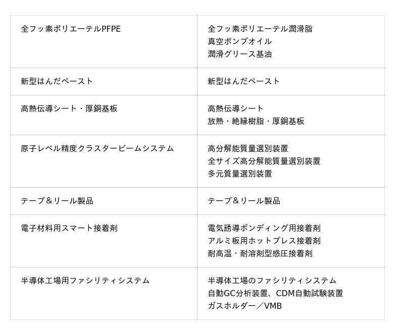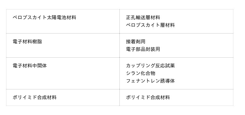 本展示会では、ハイケムが提携・共同開発などを通じて取り扱う、最先端のスマート実装材料・装置やペロブスカイト太陽電池材料などの先端エレクトロニクス材料をご紹介いたします。また、安定供給実績を有する半導体材料や電子材料樹脂・中間体、ポリイミド合成材料なども展示いたします。
