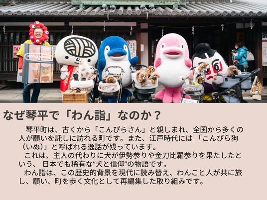 琴平町には、江戸時代に主人の代わりに犬が伊勢参りや金刀比羅参りを果たした