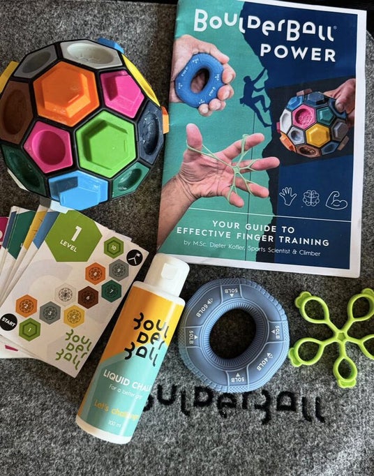 Boulderball POWER は、 判断力・保持力・集中力 を同時に鍛える、 手のひらサイズの本格クライミングトレーニングツール です。