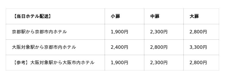 ※ 当面の間、京都駅から大阪エリアへのホテル配送はできません