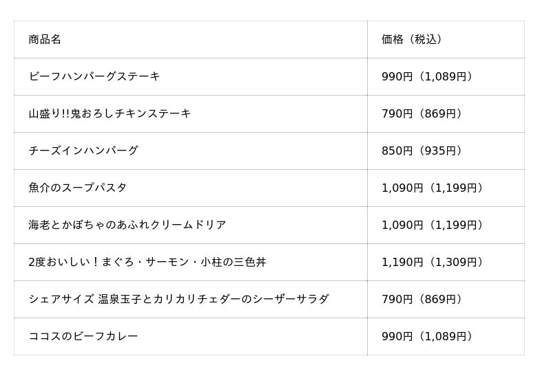 ※テイクアウトでもご注文いただけます。テイクアウトの場合税率が異なります。