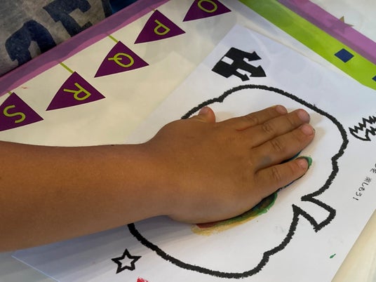 手形足形アート お米由来のワックスでできた体にも優しいキットパスを使って手形足形を楽しめます