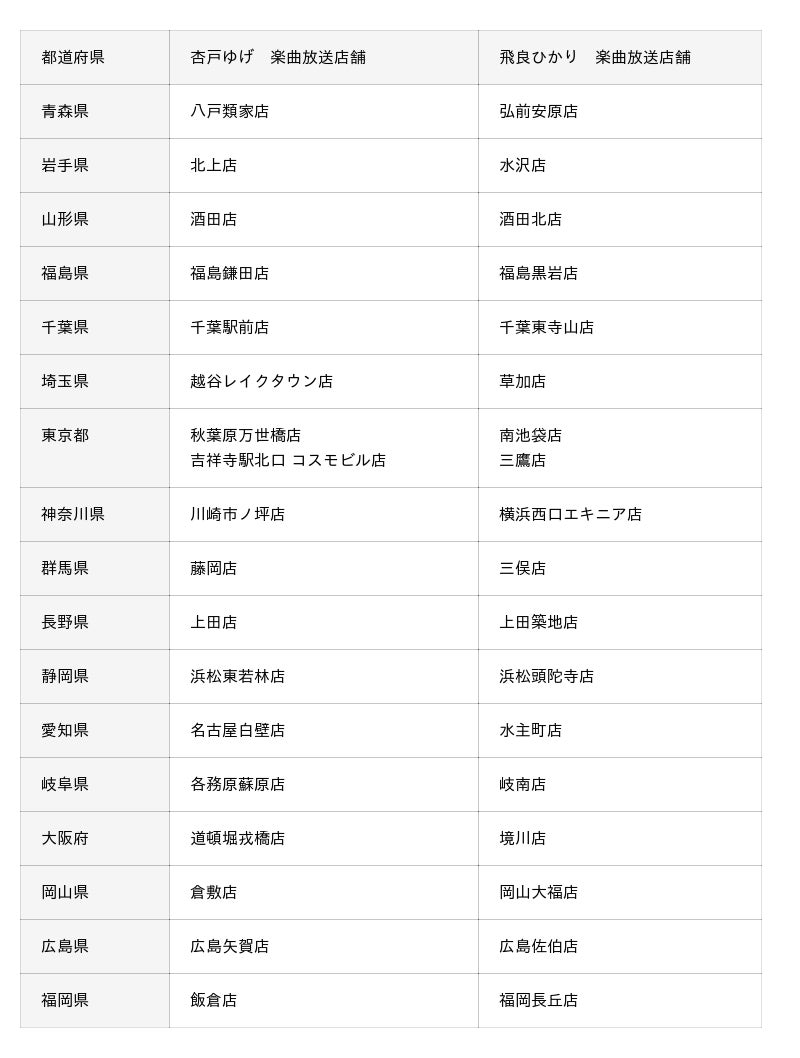 ※設備の不具合・機器トラブルにより一時的に店内BGMをご利用いただけない場合がございます。あらかじめご了承ください。