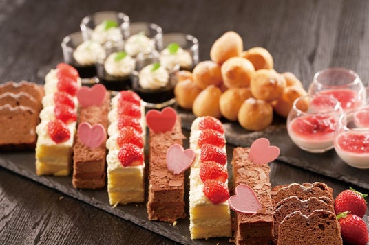 この時季ならではの苺やチョコレートを使ったスイーツも充実。苺を使用した「ショートケーキ」や「ブラマンジェ」、そして大人の味わい「ブラックベリーショコラ」「生チョコロールケーキ」など、食後まで楽しめるラインナップです。