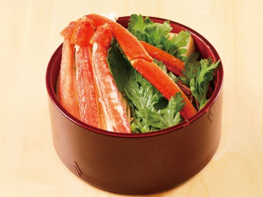 蟹の旨みを逃さず仕上げた一品。艶やかな蟹の身と美しい赤色が、食欲を誘います。ふっくらとした身の甘さと凝縮された旨みをお楽しみください。