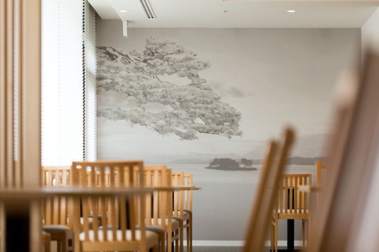 「五感で感じる島根らしさ」をテーマに、食だけでなく、目からも島根らしさを感じられる空間。個室ごとに隠岐・出雲・石見をテーマにして、メインエリアは松江城下町の雰囲気をインテリアで表現。山陰では数少ないライブキッチンを楽しめるレストランです。また、お祝いや記念日にご利用いただけるアニヴァーサリールームでは、映像演出を提供しております。