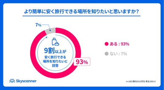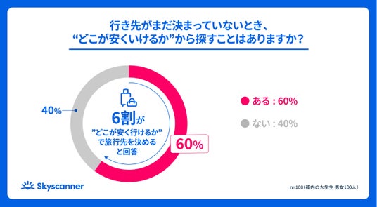 世界中の航空会社・旅行会社・ホテルなど約1,200のウェブサイトから最適な旅行プランを提供する” グローバル旅行アプリ” Skyscanner Japan株式会社(本社:東京都港区、以下スカイスキャナー)は、日本で起きている新たな旅行トレンドのインサイトを探るべく、大学生の男女100人を対象に旅行計画に関する実地調査を実施しました。