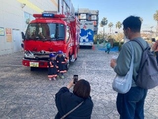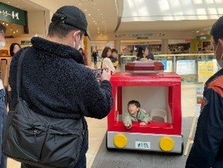 こども防火服着装体験、撮影用ちびっこ消防車(発泡スチロール製ミニサイズ)など