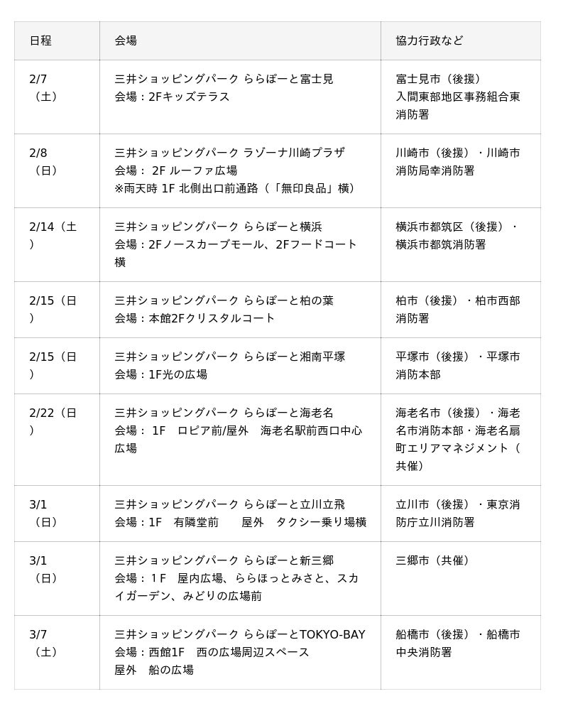 三井不動産株式会社(所在:東京都中央区)と三井不動産商業マネジメント株式会社(所在:東京都中央区)はサステナブルな社会の実現にむけて、行政や消防・NPO等と連携し、防災啓発イベント「第13回 &EARTH 災害に負けない知識を学ぼう!~防災スタンプラリー~」を、首都圏9施設にて2月7日(土)から順次開催します。
