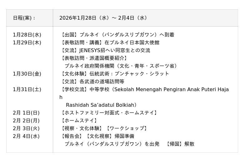 本プログラムは、外務省が推進する国際交流事業「対日理解促進交流プログラムJENESYS」の一環として行われる派遣プログラムです。