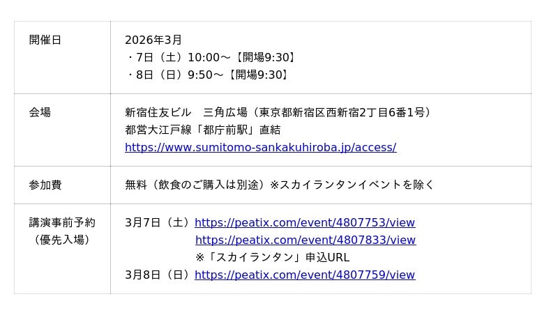 株式会社エイチ・アイ・エス(本社:東京都港区 以下、HIS)は、海外旅行の魅力を五感(“見る・聴く・食べる・体験する“)で楽しみながら再発見していただくことを目的とし、第6回「HIS海外旅行大感謝祭」を2026年3月7日(土)・8日(日)の2日間、新宿住友ビル三角広場にて開催いたします。