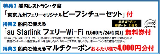 船内で使える「au Starlink フェリーWi-Fi (1,500円/24時間)」無料券付
