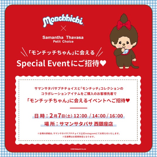 さらに2月7日(土)よりサマンサタバサ 西銀座店にて『モンチッチちゃん』来店イベントを開催。