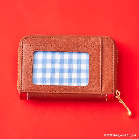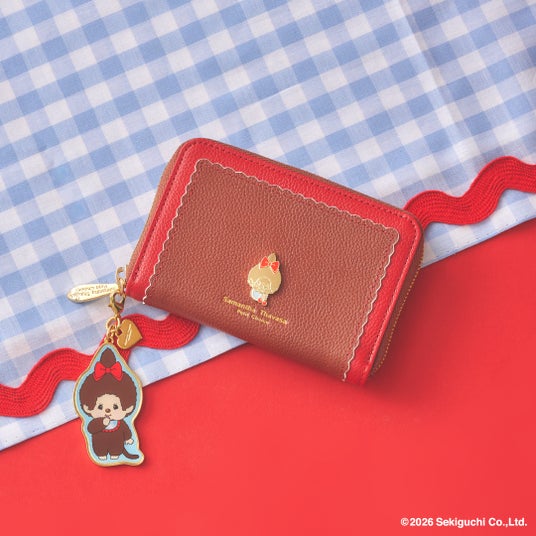 「モンチッチちゃん」をイメージしたブラウン×レッドの配色、スカラップのデザインがポイント。