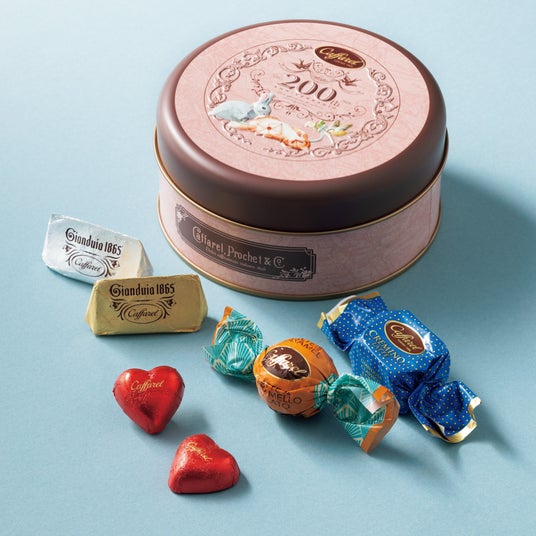 子猫たちのスイーツパーティーを描いた缶に、ザクザク食感のクランチや風味豊かなトリュフをアソート。愛らしいルックスに心ときめくチョコレートの詰め合わせです。