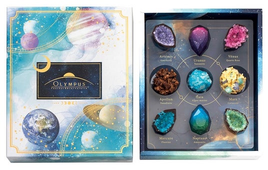 惑星の鉱物をイメージした煌びやかなショコラのアソート。