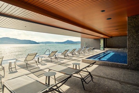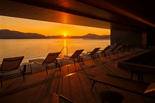 瀬戸内の海や島々を贅沢に一望できるインフィニティプールや外気浴スペース、屋内風呂、ジャグジー