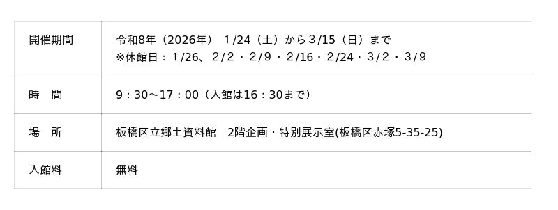 紹介ページ(区ホームページ)https://www.city.itabashi.tokyo.jp/kyodoshiryokan/oshirase/3000736/3000593.html