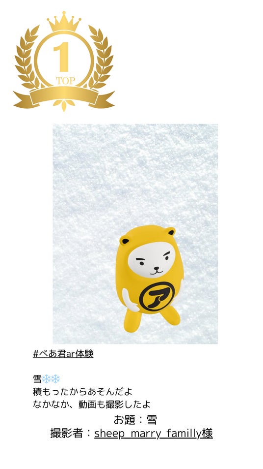 あえて大きな演出をせず、日常の一瞬を選んだことで、ARべあ~君が自然に生活空間に溶け込んでいる点が印象的。テーマ解釈の的確さと、共感を呼ぶ視点が評価につながりました。