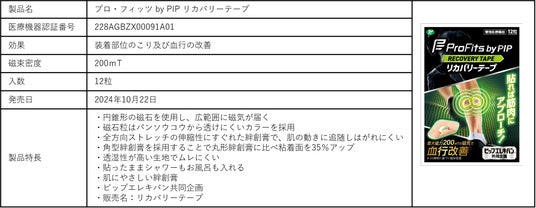 ■プロ・フィッツ公式Instagramをフォロー&指定投稿をリポストで「プロ・フィッツ by PIP リカバリーテープ」の試供品をプレゼント※貼ることで血行を改善し、コンディショニングをサポートする磁気治療器です。ランニング中~ランニング後に貼ってお試しください。