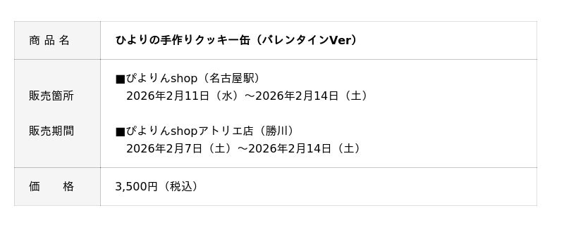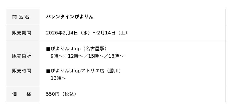 ジェイアール東海フードサービス株式会社(本社:愛知県名古屋市、代表取締役社長:岩下賢一)は、バレンタインシーズンに合わせ、ラズベリーとホワイトチョコプリンを使った「バレンタインぴよりん」と、クッキー缶のバレンタイン限定商品を期間限定で販売します。甘酸っぱい「バレンタインぴよりん」と、贈り物にぴったりのクッキー缶で、大切な人へのギフトや自分へのごほうびに、バレンタインのひとときを彩ります。