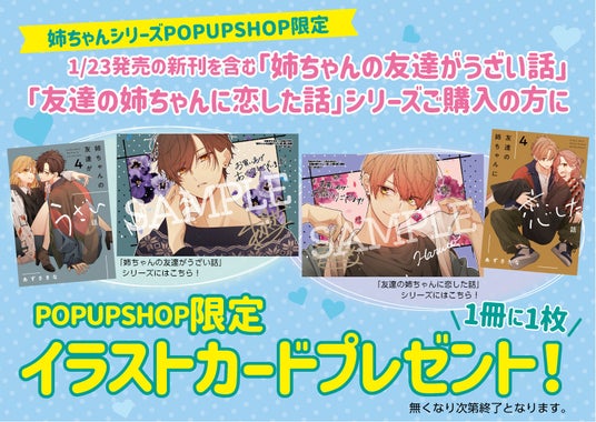 株式会社未来屋書店(本社:千葉市美浜区、代表取締役社長:平川雅隆、以下「未来屋書店」)は、漫画家 あずさきな先生による人気作『姉ちゃんシリーズ』のPOP UP SHOPを、1月31日(土)より未来屋書店レイクタウン店および大日店にて、期間限定で開催いたします。