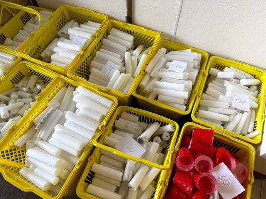 地元の寺から提供された使用済みのロウソク