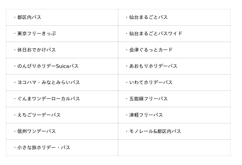 2 「おトクなきっぷ」の一部商品
