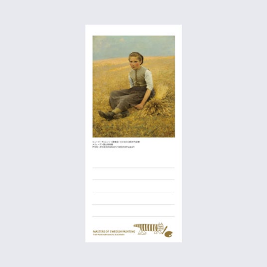 スウェーデン絵画の美しさをそのまま閉じ込めた一筆箋。縦書き・横書きの2タイプで、それぞれ4作品ずつ異なる絵画が楽しめます。画家になりきったマイキーがワンポイントで登場していますよ。価格:770円(税込)