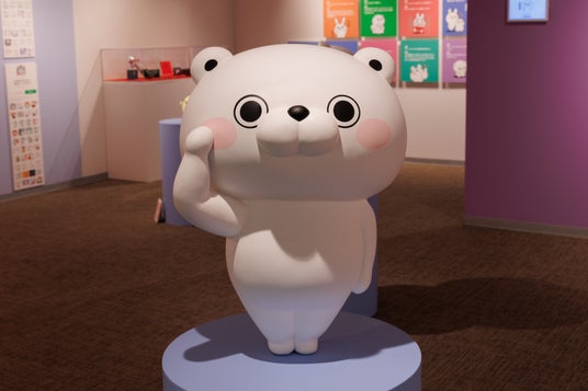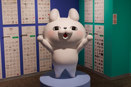 うさぎさん、くまさん、ぬこさま、ぶたさん、わんこ、ひよこさんのスタンプを模した立像の展示