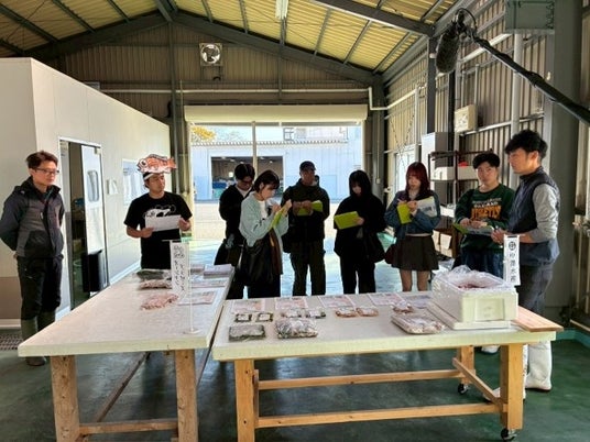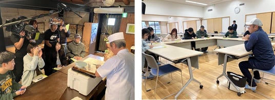 午後には「相馬双葉漁業協同組合」を訪れ、漁師の石橋さんから、相馬産トラフグが「福とら」としてブランド化されるまでの経緯や、品質管理、販路拡大に向けた取り組みについてお話を伺いました。ブランド化に至るまでの試行錯誤や努力、地元漁業者の想いに触れ、学生たちは福島の水産業の底力と可能性を強く感じるとともに、その魅力を次世代へ伝えていく責任を実感しました。
