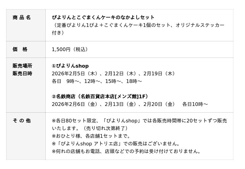 「ぴよりん」と、こぐまくんの代表作「こぐまくんケーキ」。 これまでそれぞれに親しまれてきた2つをセットにして、名古屋駅のぴよりんshopと名鉄商店で限定販売します。