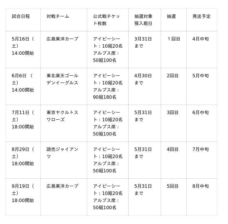 ※席種、試合日程はお選びいただけません。