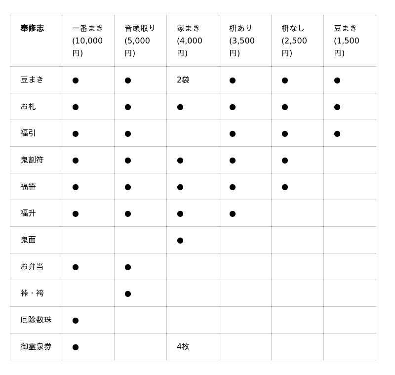 当日申し込みの方は、下表の奉修志で豆まきにご参加いただけます。