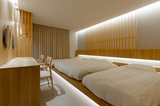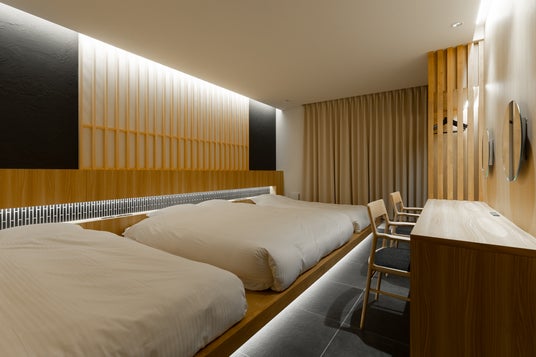 都会の喧騒から解き放たれた“静穏”をテーマに、最大8名まで宿泊可能な完全プライベート空間です。最大天井高5mを誇る坪庭付きの象徴的なバルコニーを備え、各所に障子のモチーフを取り入れた、黒と木目のコントラストが印象的な和モダンデザインを採用。豊かな自然と和の美を融合させた贅沢なひと時をご提供します。音・光・香りにまでこだわり、全ての空間が五感を刺激し、日常から離れるための“余白”を大切にしています。