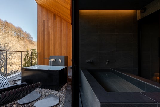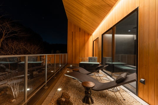 四季折々に合わせて、ゲストがお好みで水風呂とお湯風呂を自由に利用可能です。冬の寒い日には、露天風呂にお湯を張り、内風呂を水風呂に。夏の暑い日には、露天風呂を水風呂にして避暑を楽しめます。また、直結するバルコニーで自然と一体化する外気浴も可能です。ホテルのアメニティには、国内ブランドであるOSAJIを採用。アロマティックウッディの香りは、深い呼吸と心地よさをもたらします。