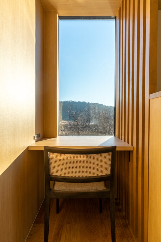 四季折々を感じるプライベートデスク屋上に続く3Fにプライベートな書斎を完備。気持ちの良い朝日が入り、読書や仕事が捗ります。すぐ近くに見える木々や奥の山の稜線は四季折々にその表情を変え、季節の移ろいを感じることができます。