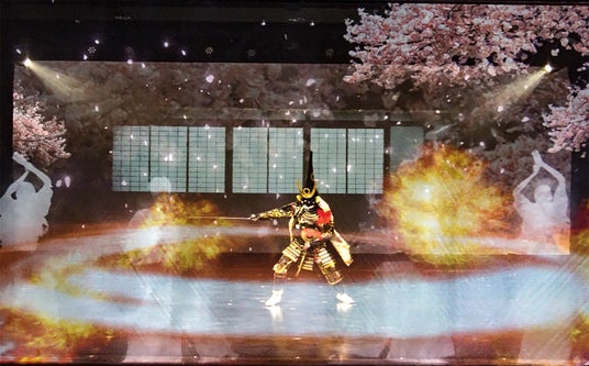 本格的な甲冑を着用し、殺陣(たて)に合わせてVFXエフェクトが出現!