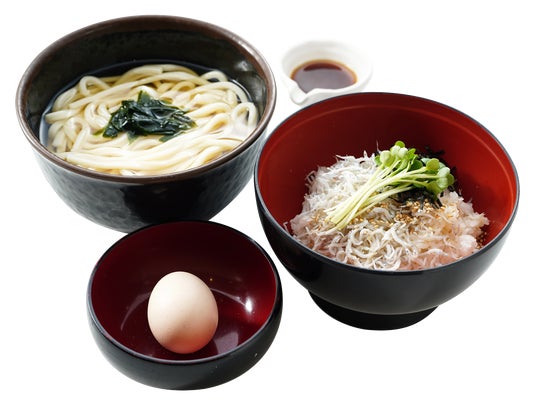 ■淡路島産釜揚げしらす丼と讃岐うどんセット1,180円(税込) 淡路島産「釜揚げシラス」と「北坂たまご」を存分に楽しめるリニューアルメニュー。
