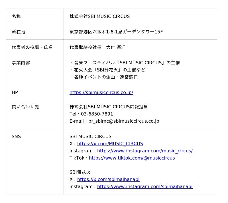 株式会社SBI MUSIC CIRCUS [email protected] 03-6850-7891