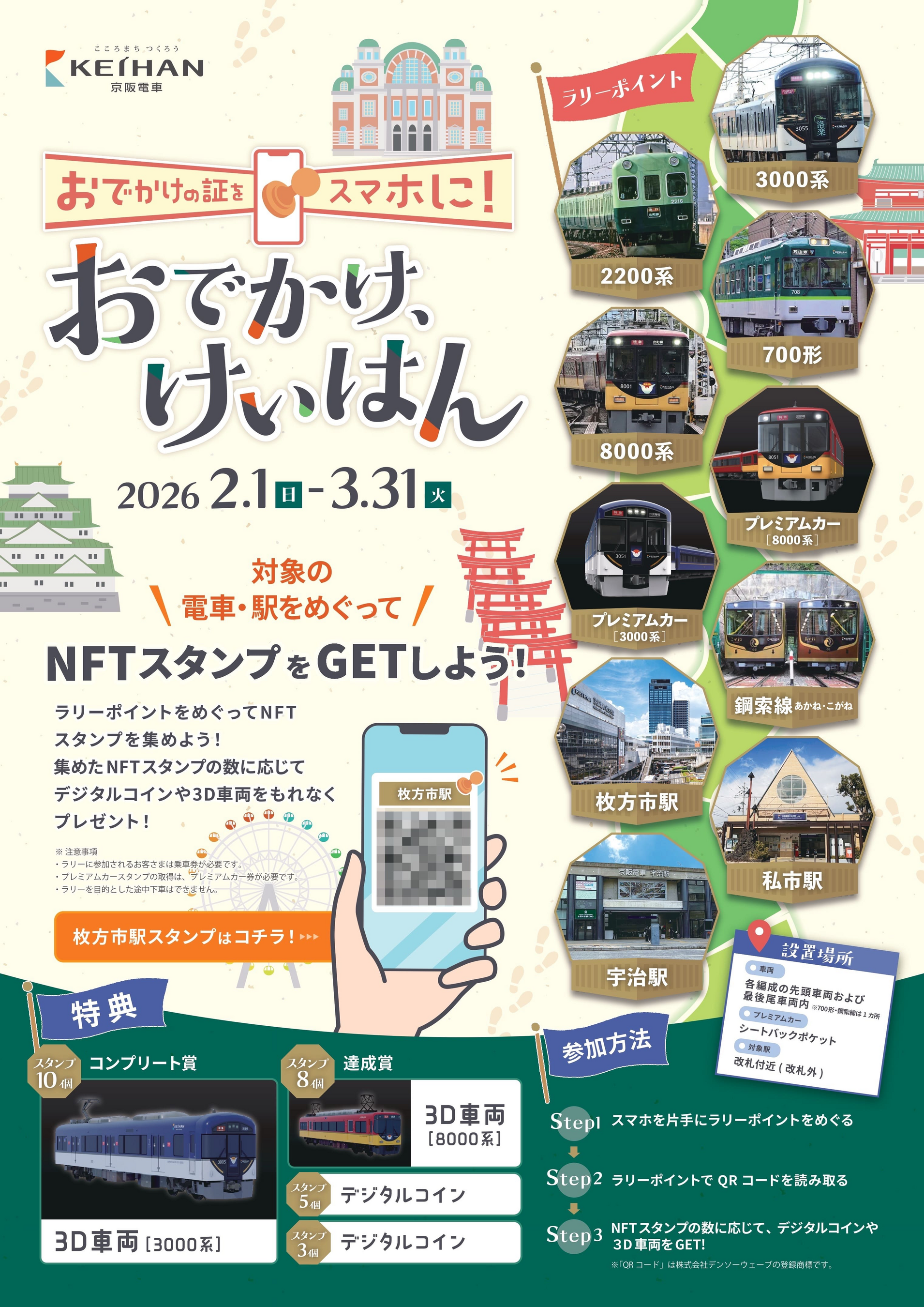 NFT スタンプラリープロジェクト ~おでかけの証をスマホに“おでかけ、けいはん” NFT スタンプを集めて 3D 車両を GET しよう!~/ 京阪ホールディングス株式会社、京阪電気鉄道株式会社(2026年1月23日)